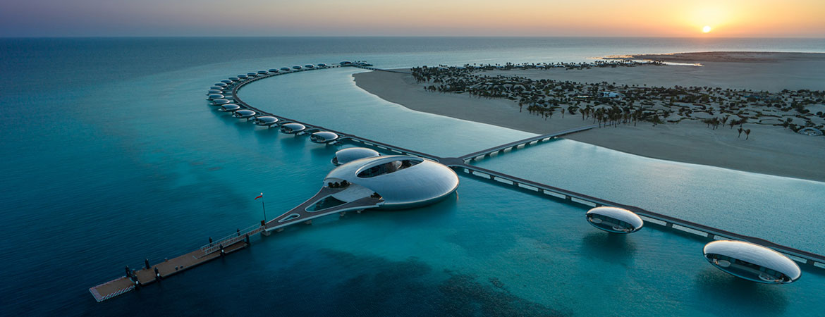 Through its leading approach to sustainability, Shebara seamlessly combines its unique architecture – take one-of a kind, stainless-steel orbs, which fade into the horizon as the surface refracts the light – with the island’s natural environment. Home to its own solar farm and an array of integrated utilities, the resort represents everything that Red Sea Global stands for as a responsible developer.